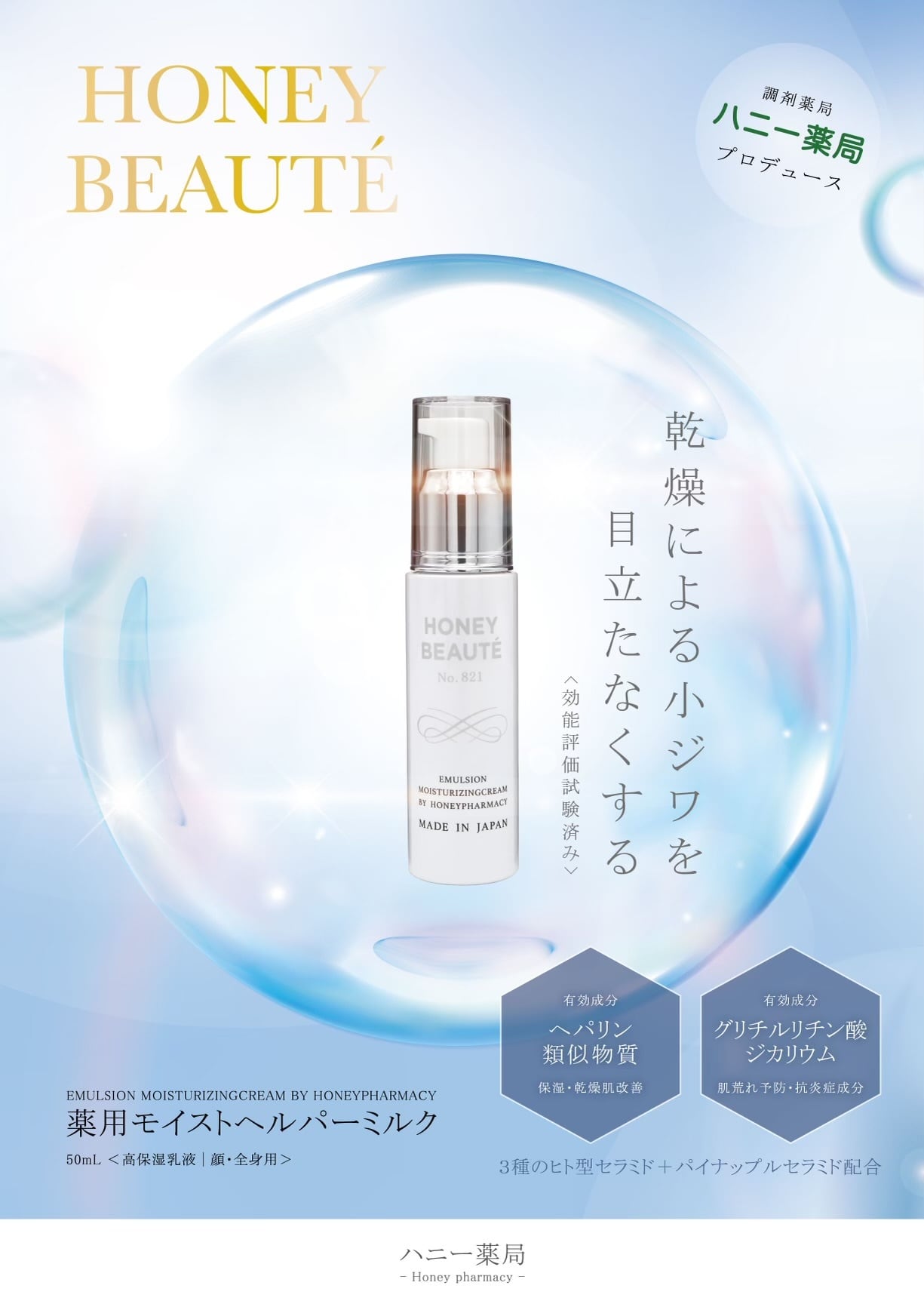 HONEY BEAUTEは熊本県山鹿市にあるハニー薬局が運営する化粧品ブランドです。
